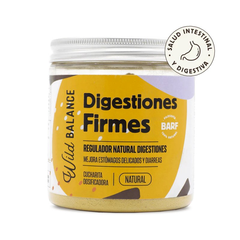 DIGESTIONES FIRMES es un suplemento para perros y gatos que mejora su salud intestinal y digestiva. Ayuda a cortar diarreas en perros y gatos. Este mix está elaborado a base de ingredientes que actúan como prebiótico regulador de problemas intestinales. Producto 100% natural, sin conservantes ni aditivos.
